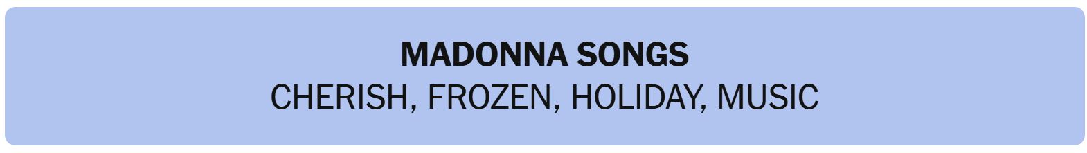 - Hint 1: One of the groups is “MADONNA SONGS“.