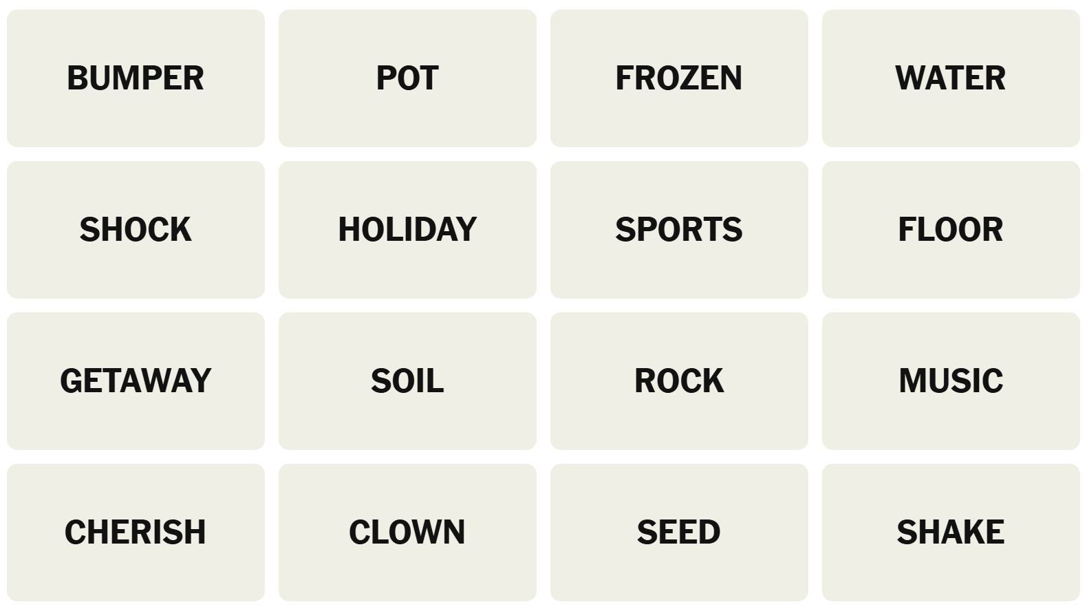 There are sixteen words for the Connection puzzles, which are: