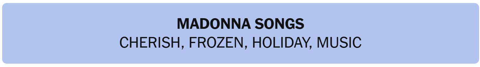 • MADONNA SONGS – CHERISH, FROZEN, HOLIDAY, MUSIC