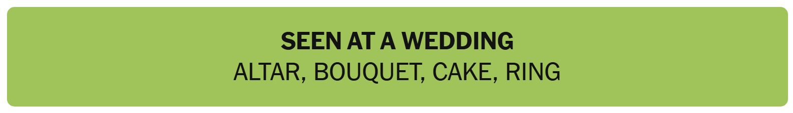• SEEN AT A WEDDING – ALTAR, BOUQUET, CAKE, RING