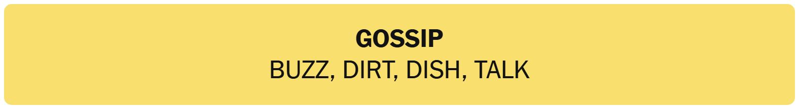 • GOSSIP – BUZZ, DIRT, DISH, TALK