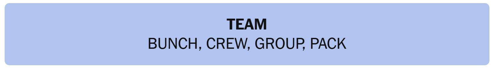 • TEAM – BUNCH, CREW, GROUP, PACK