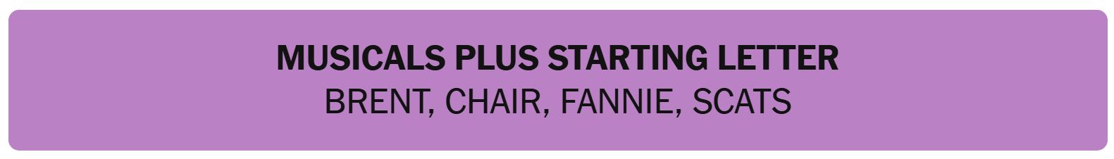 • MUSICALS PLUS STARTING LETTER – BRENT, CHAIR, FANNIE, SCATS