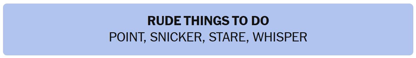- RUDE THINGS TO DO – POINT, SNICKER, STARE, WHISPER