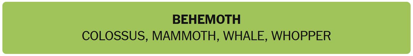 - BEHEMOTH – COLOSSUS, MAMMOTH, WHALE, WHOPPER