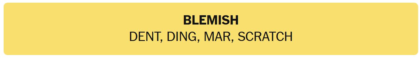 - BLEMISH – DENT, DING, MAR, SCRATCH