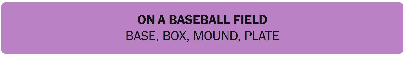 - ON A BASEBALL FIELD – BASE, BOX, MOUND, PLATE