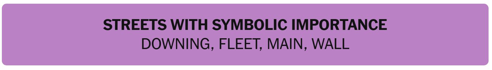 • STREETS WITH SYMBOLIC IMPORTANCE – DOWNING, FLEET, MAIN, WALL