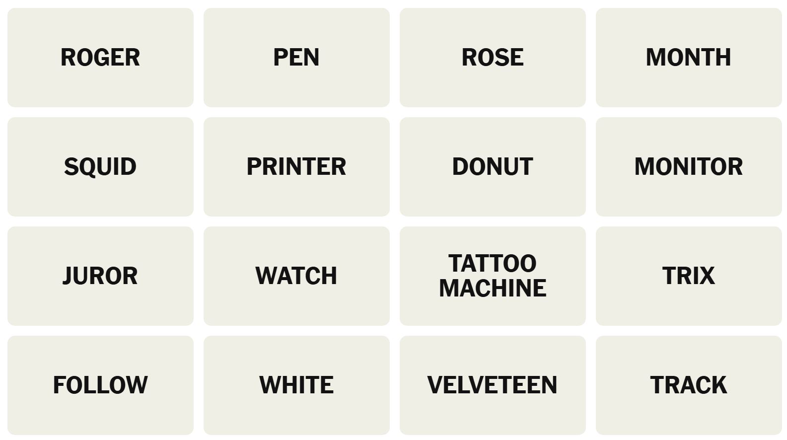 There are sixteen words for the Connection puzzles, which are: