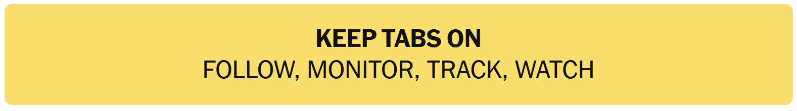 - KEEP TABS ON – FOLLOW, MONITOR, TRACK, WATCH