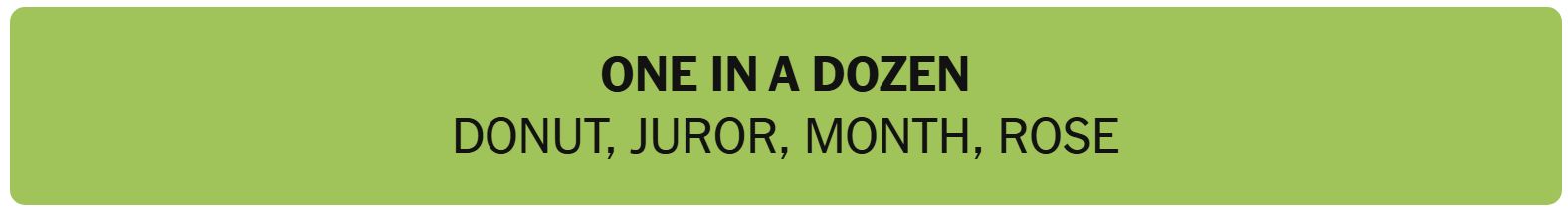 - ONE IN A DOZEN – DONUT, JUROR, MONTH, ROSE