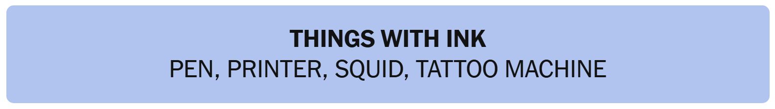 - THINGS WITH INK – PEN, PRINTER, SQUID, TATTOO MACHINE