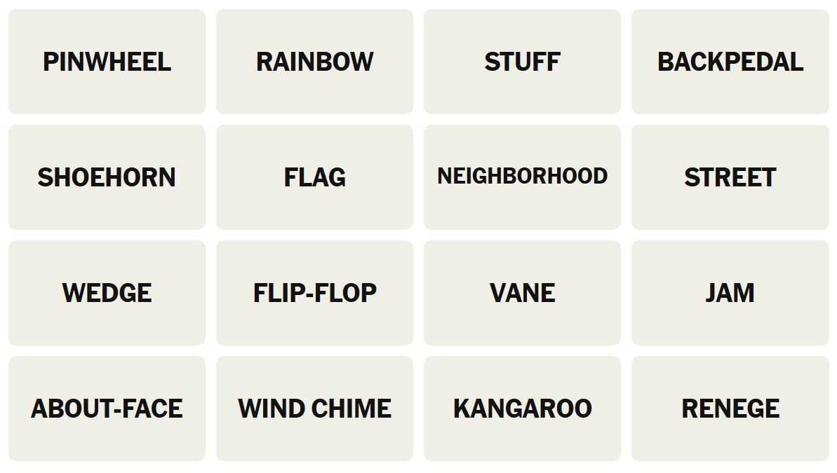 - Hint 2: PINWHEEL and VANE are in the same group.