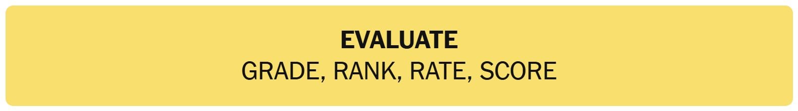 - EVALUATE – GRADE, RANK, RATE, SCORE