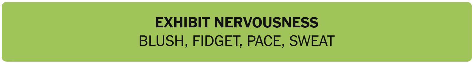 - EXHIBIT NERVOUSNESS – BLUSH, FIDGET, PACE, SWEAT
