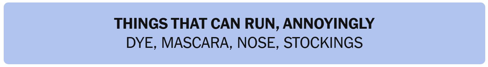 - THINGS THAT CAN RUN, ANNOYINGLY – DYE, MASCARA, NOSE, STOCKINGS