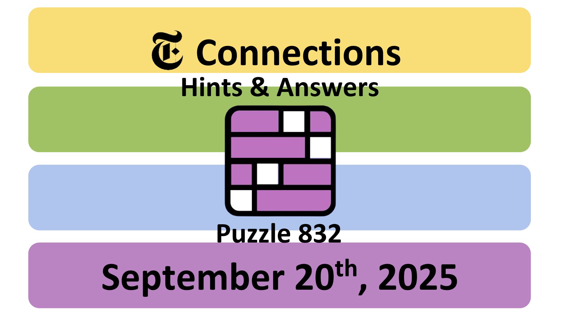 Here are the answers for the New York Times (NYT) Connections puzzle #832 today, released on September 20th, 2025, and some hints to help you solve them.