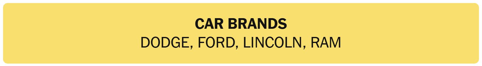 - CAR BRANDS – DODGE, FORD, LINCOLN, RAM
