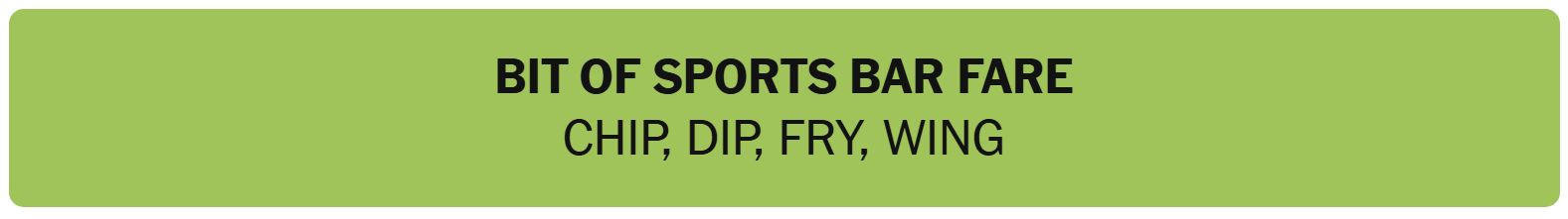 - BIT OF SPORTS BAR FARE – CHIP, DIP, FRY, WING