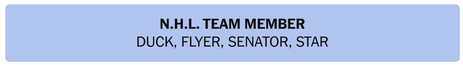 - N.H.L. TEAM MEMBER – DUCK, FLYER, SENATOR, STAR