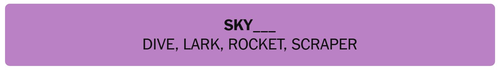 - SKY ___ – DIVE, LARK, ROCKET, SCRAPER