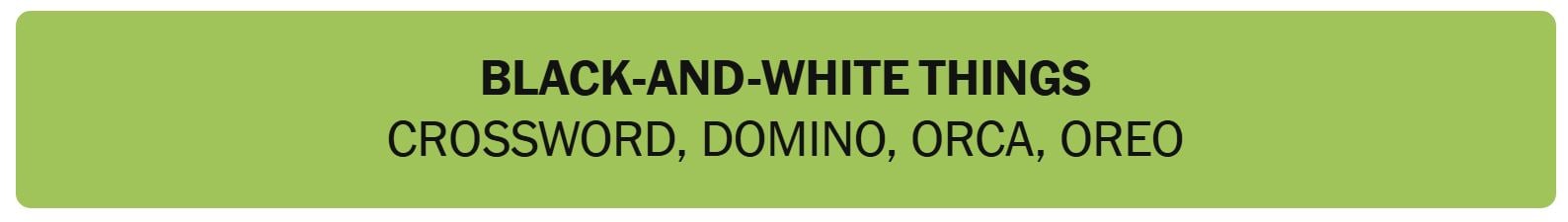 - BLACK-AND-WHITE THINGS – CROSSWORD, DOMINO, ORCA, OREO