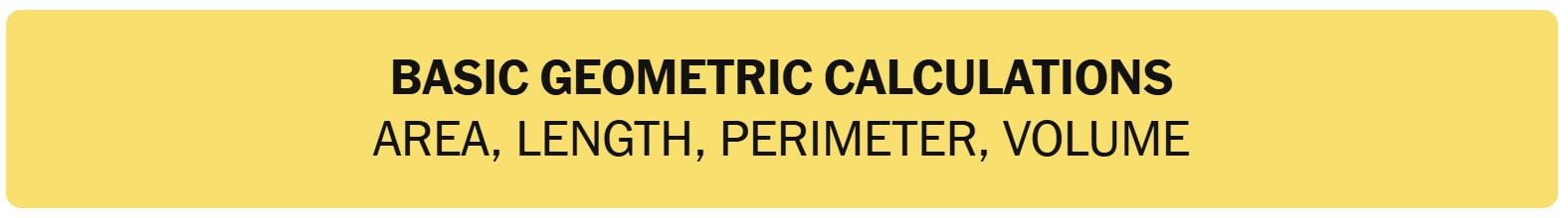- BASIC GEOMETRIC CALCULATIONS – AREA, LENGTH, PERIMETER, VOLUME