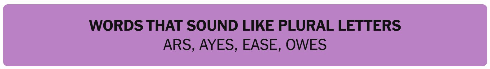 - WORDS THAT SOUND LIKE PLURAL LETTERS – ARS, AYES, EASE, OWES