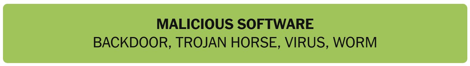- MALICIOUS SOFTWARE – BACKDOOR, TROJAN HORSE, VIRUS, WORM