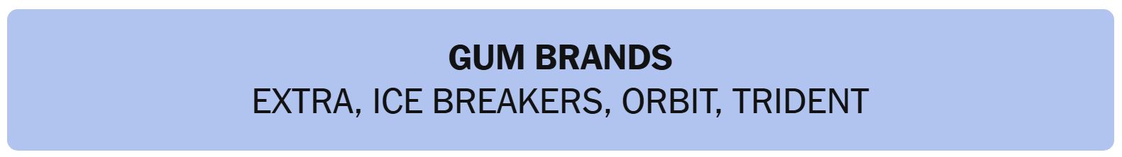 - GUM BRANDS – EXTRA, ICE BREAKERS, ORBIT, TRIDENT