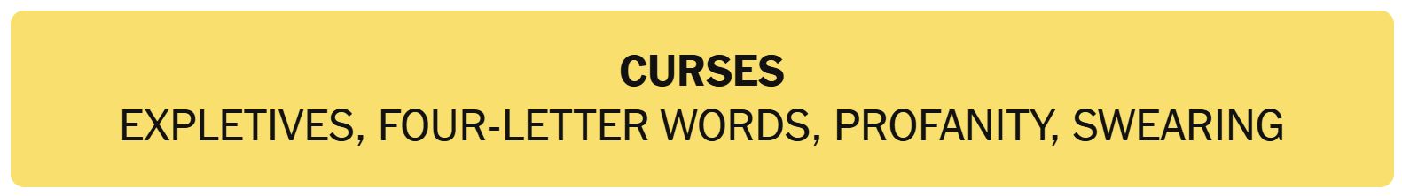 - CURSES – EXPLETIVES, FOUR-LETTER WORDS, PROFANITY, SWEARING
