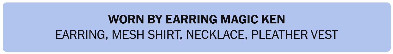 - WORN BY EARRING MAGIC KEN – EARRING, MESH SHIRT, NECKLACE, PLEATHER VEST