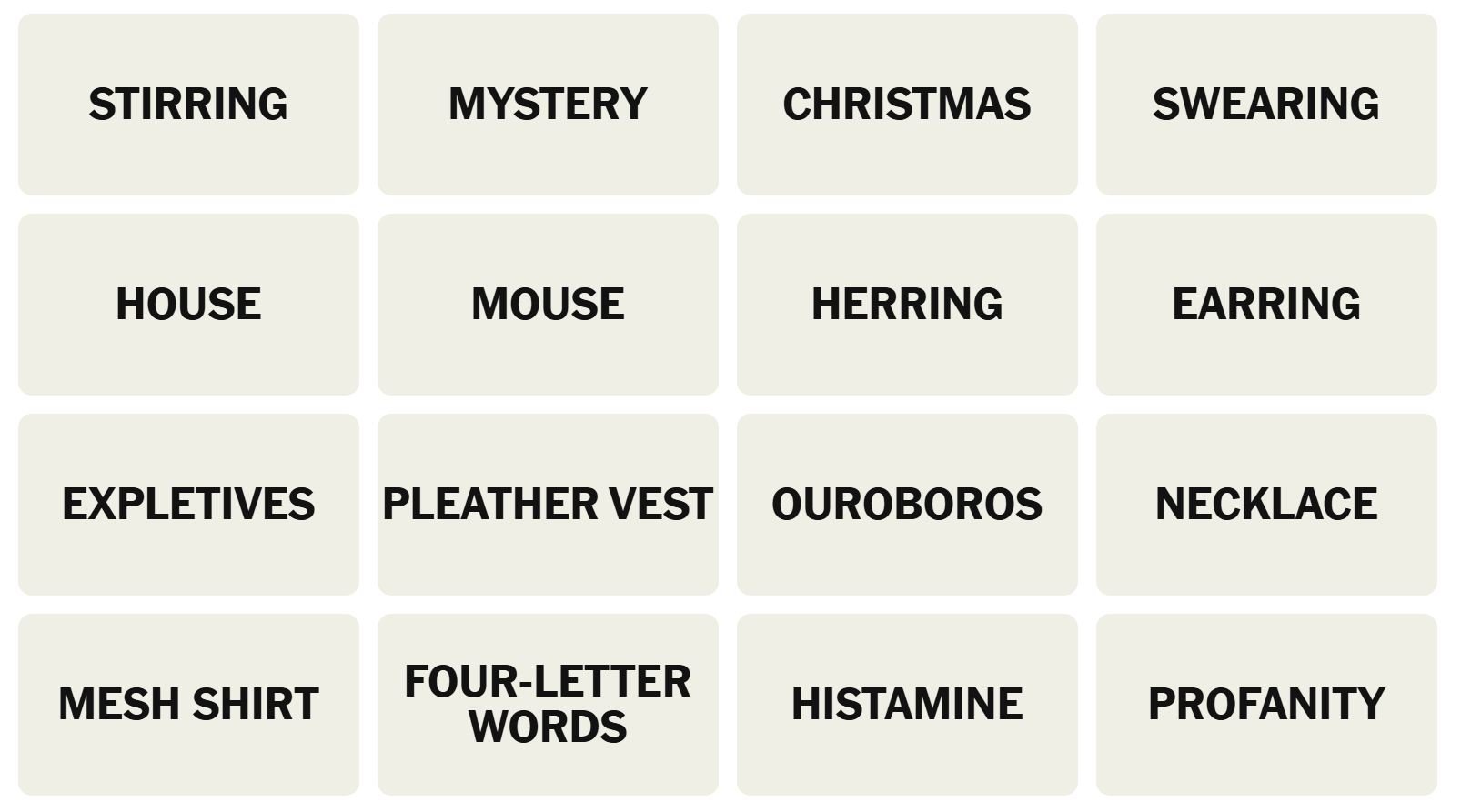 - Hint 2: HISTAMINE and MYSTERY are in the same group.