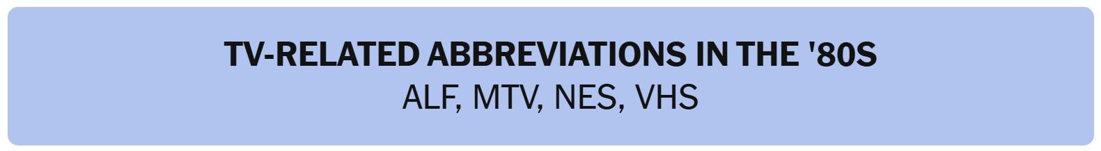 • TV-RELATED ABBREVIATIONS IN THE ’80S – ALF, MTV, NES, VHS