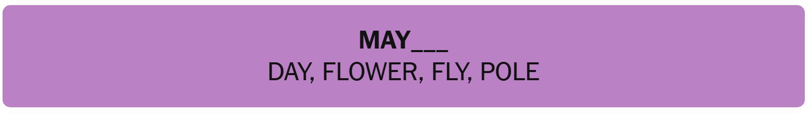 • MAY ___ – DAY, FLOWER, FLY, POLE