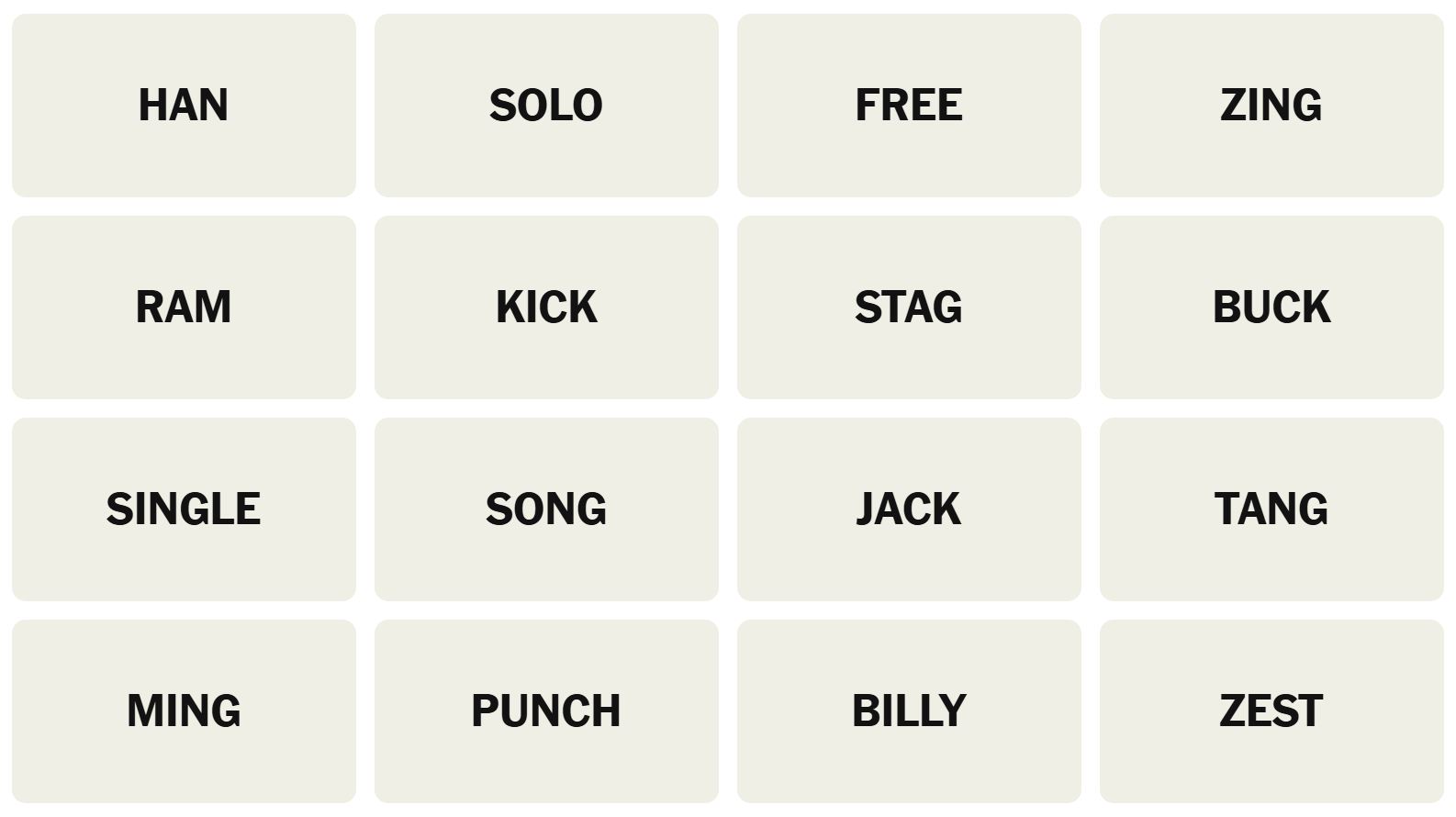 There are sixteen words for the Connection puzzles, which are: