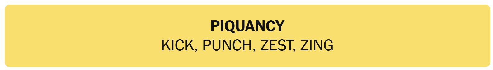 - PIQUANCY – KICK, PUNCH, ZEST, ZING
