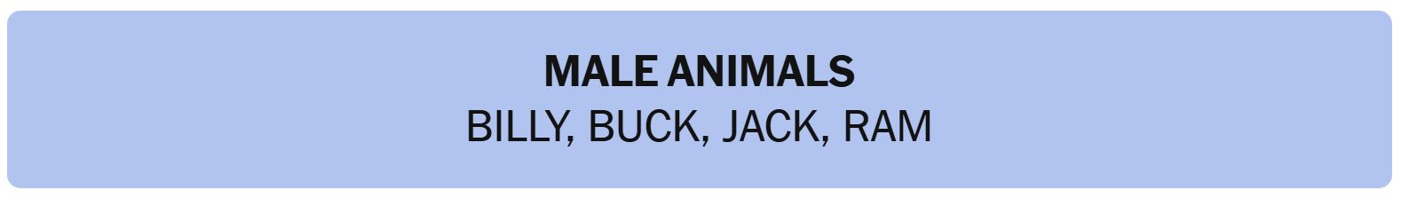 - MALE ANIMALS – BILLY, BUCK, JACK, RAM