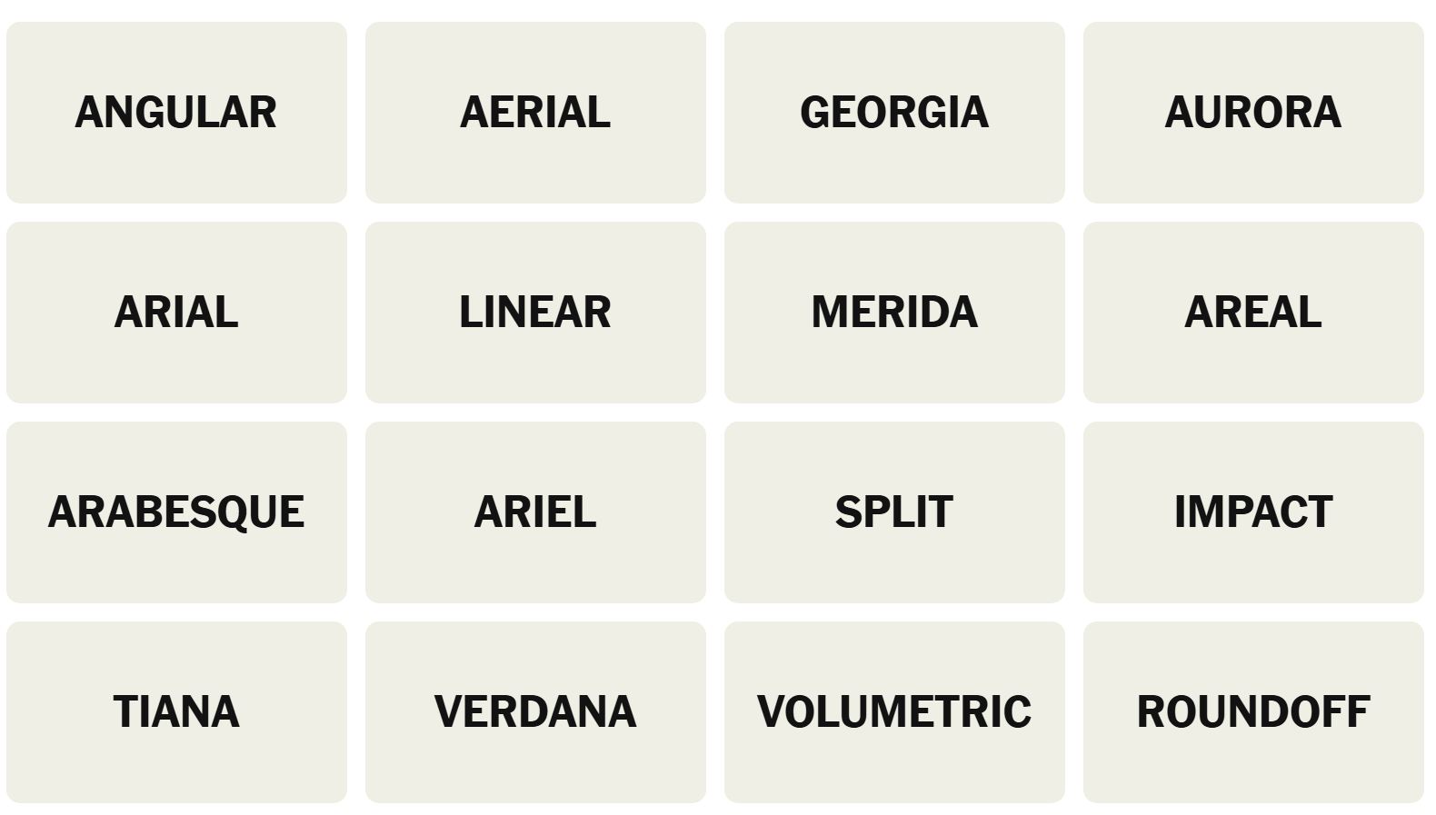 - Hint 4: One group of words is “GEOMETRY ADJECTIVES“.