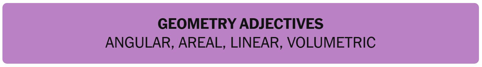 - GEOMETRY ADJECTIVES – ANGULAR, AREAL, LINEAR, VOLUMETRIC