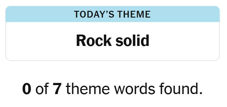 Today’s theme or hint for the puzzle is, “ROCK SOLID” and there are seven theme words to be found.