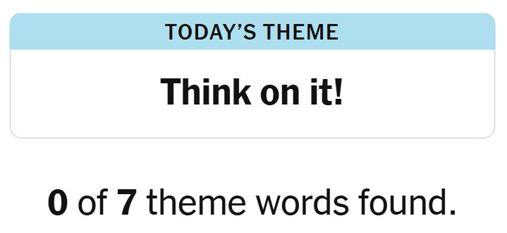 Today’s theme or hint for the puzzle is, “THINK ON IT!” and there are seven theme words to be found.