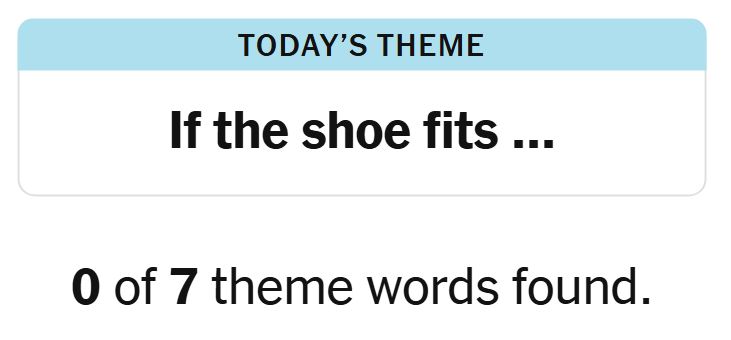 Today’s theme or hint for the puzzle is, “IF THE SHOE FITS…” and there are seven theme words to be found.