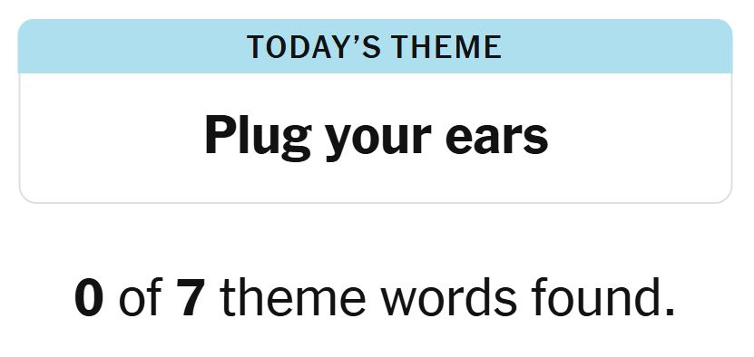 Today’s theme or hint for the puzzle is, “PLUG YOUR EARS” and there are seven theme words to be found.