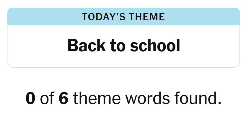 Today’s theme or hint for the puzzle is, “BACK TO SCHOOL” and there are six theme words to be found.