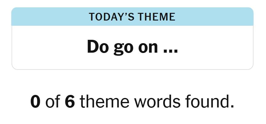 Today’s theme or hint for the puzzle is, “DO GO ON…” and there are six theme words to be found.