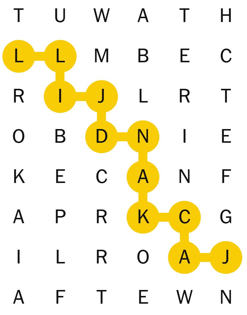 Once you have found the spangram word, it will stay highlighted in yellow.