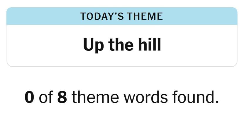Today’s theme or hint for the puzzle is, “UP THE HILL” and there are eight theme words to be found.