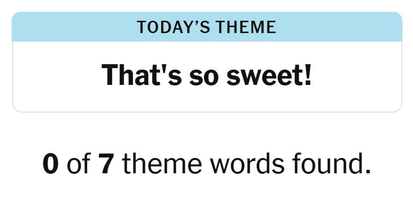 Today’s theme or hint for the puzzle is, “THAT’S SO SWEET!” and there are seven theme words to be found.