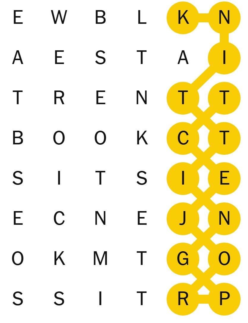 The word starts at the top, hits the bottom and weaves back to end near the top of the grid.